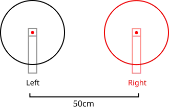 Les micros sont séparés par la tête de l'auditeur et placés juste au-dessus des oreilles (sur des branches de lunettes pour exemple) pour une image stéréo réaliste ou en avant des lunettes pour une image plus présente mais moins réaliste et plus éloignée des diffusions et diffractions temporelles générées par la tête. Contrainte : La tête de l'auditeur doit rester fixe pour ne pas perturber l'image stéréo obtenue [réf. souhaitée].