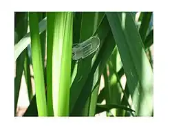 Un capteur sur une feuille d'un plan de canne à sucre.