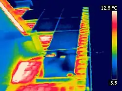 • des drones de surveillance des anomalies, qui permettent d'intervenir plus tôt, et au bon endroit uniquement ; A titre d'exemple, de tels drones sont utilisés en France parmi les nouveaux outils de la télésurveillance nationale centralisée de EDF solutions solaires, filiale d'EDF. Cette entreprise a créé en 2009 un « centre de contrôle des toitures solaires », qui (en 2013) surveille 550 installations, dont 150 propriété de EDF EN, correspondant à une puissance de 55 MW environ[17]. Une caméra infrarouge haute résolution gyro-stabilisée emportée par les drones montrent aux opérateurs distants d’éventuels défauts des circuits[16]. L’autonomie du drone est encore très limitée, et son passage est coûteux (2 000 à 4 000 €/j) mais ces deux défauts sont économiquement compensés par sa maniabilité et sa rapidité d'intervention[16].