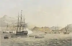 | 1 navire de ligne 3 corvettes 2 sloops 2 navires à vapeur 10 bricks/navires de transport 10 canons 2 mortiers (à terre) |