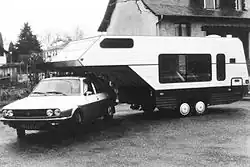 L'ensemble se manœuvre comme une semi-remorque avec, pour autres avantages, la présence au-dessus de la voiture d'une capucine occupée par un grand lit double, d'où une longueur habitable très importante par rapport à celle de l'ensemble roulant, et une charge utile conséquente permettant un aménagement confortable de type autocaravane (camping-car).