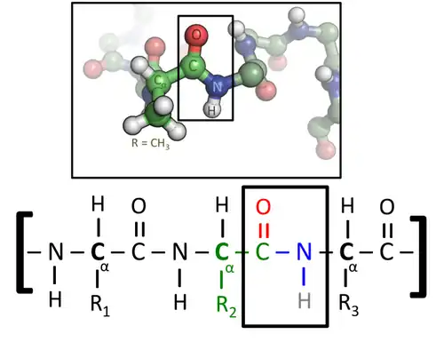 Liaison peptidique dans une protéine, avec carbone α.
