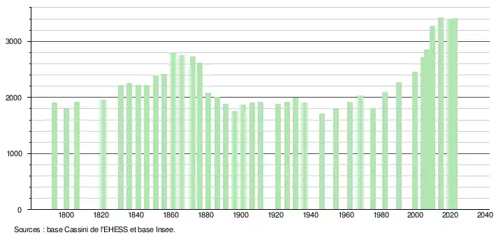 - ↑ Fiches Insee - Populations de référence de la commune pour les années 2006, 2007, 2008, 2009, 2010, 2011, 2012, 2013, 2014, 2015, 2016, 2017, 2018, 2019, 2020, 2021 et 2022.