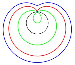 La cardioïde est une courbe algébrique plane, trajectoire d'un point fixé à un cercle qui roule sans glisser sur un second cercle de même diamètre[1]. Il s'agit donc d'une courbe cycloïdale dont la directrice est un cercle (ou épicycloïde).