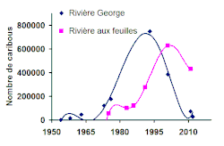 Nombre de caribous toundriques dans la population de la rivière George et celle de la rivière aux Feuilles