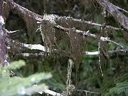 Des lichens arboricoles sur des branches basses d'une épinette noire