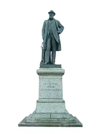 En 1902, un mémorial lui est érigé à un emplacement central à Neunkirchen. La statue en bronze plus grande que nature (déplacée à la fin du XXe siècle dans la Stummstraße, sur la Stummplatz) représente Stumm en tant qu'entrepreneur avec des symboles de l'industrie du charbon et de l'acier (pinces à louche et moule). Le célèbre sculpteur berlinois Fritz Schaper le créé, le moulage en bronze est effectué dans la corporation vorm. Hermann Gladenbeck (de) et fils à Berlin-Friedrichshagen[17]. Après la Seconde Guerre mondiale, le monument subit une petite «blessure de guerre» causée par un éclat d'obus à la cuisse, qui est "guérie" à la fin du XXe siècle.