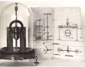 Le galvanomètre mis au point et utilisé par Jung au Burghölzli pour enregistrer la réponse électrodermale aux mots de l'inducteur. Les plans sont de la main de Jung.