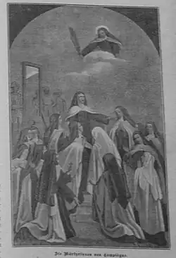 Les religieuses sont guillotinées le 17 juillet 1794, et l'historiographie traditionnelle, à partir de la matrice thermidorienne, fait terminer la Terreur avec le coup d'État parlementaire du 9 Thermidor, le 27 juillet 1794. L'hagiographie anti-révolutionnaire a voulu voir dans l'arrêt de la Terreur, dix jours après la mort des carmélites, une réponse positive à leurs prières[16].