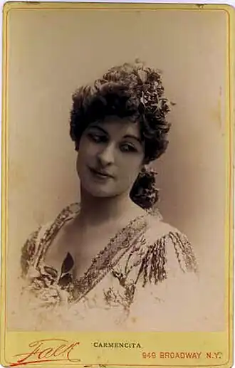 Née à Alméria en Andalousie, Carmencita prend des leçons de danse à Malaga, à 200 km plus à l'ouest et apparaît pour la première fois au théâtre Cervantes de Malaga en 1880[3],[4]. En 1882, elle fait une tournée à Paris et au Portugal. Elle retourne à Paris et se produit en 1887 au Nouveau Cirque[5], en 1888 au Concert de l'Horloge[6],[7], puis durant l'Exposition universelle de Paris de 1889 ; en 1889 elle revient au Nouveau Cirque[8], où l'agent Bolossy Kiralfy (en) la remarque et l'engage pour venir aux États-Unis. Elle débute à New-York le 17 Août, 1889 au ballet de l'Antiope. Son association avec Kiralfy s'arrête au début de 1890 et elle commence à être connue quand John Koster et Albert Bial l'engagent dans leur salle de concert de la 23e rue[9], le 10 février 1890[10]. Durant les années qui suivent, Carmencita tourne dans les principales villes des États-Unis. Elle apparaît au music-hall de Koster et Bial en novembre et au début de décembre 1894 avant de vendre ses biens et de retourner en Europe[11]. On la voit au Palace Theatre de Londres en février 1895[12] et régulièrement à Paris, au Théâtre des Nouveautés, à l'Olympia, à l'Alcazar d'été et aux Ambassadeurs[13].