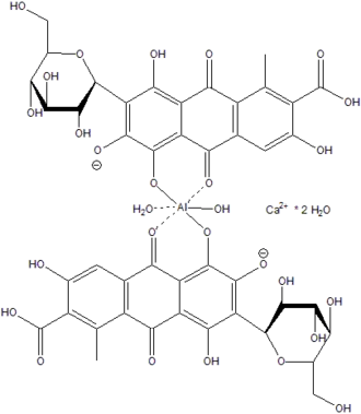 Le pigment carmin, complexe d'acide carminique et d'aluminium, s'utilise comme colorant alimentaire sous le numéro E120.