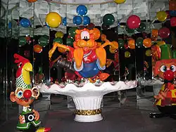 - Belgique. Jokie est au centre d'une fontaine entouré de plusieurs miroirs étroits.