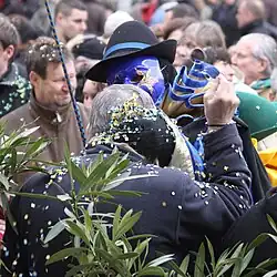 7 Une vingtaine de bandes anime à tour de rôle le carnaval. Les bandes sont composées d'une vingtaine de personnes, venues d'horizons différents : elles peuvent représenter un quartier de la ville, un lieu précis autodistribué, une corporation, une déclaration d'état ou d'intention. Les règles de recrutement à l'intérieur d'une bande sont intransigeantes : proposés par affinité, les futurs membres doivent être acceptés à l'unanimité. Elle se prépare longtemps à l'avance à l'arrière des cafés de la ville. Des règles fixées par le comité du carnaval fédèrent et règlent le ballet du carnaval.