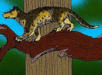 - ↑ (en) Wesley, G.D. et Flynn, J.J., « A revision Of Tapocyon (Carnivoramorpha), including analysis of the first cranial specimens and identification of a new species », Journal of Paleontology, vol. 77, no 4, , p. 769–783 (DOI 10.1666/0022-3360(2003)077<0769:AROTCI>2.0.CO;2)