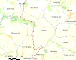 Carte de la commune de Carnoët et des communes avoisinantes.