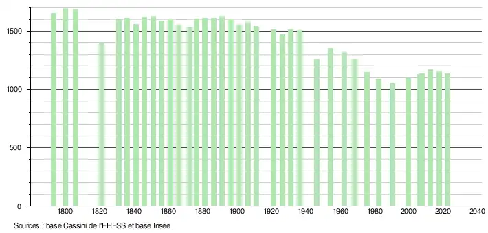 - ↑ Fiches Insee - Populations de référence de la commune pour les années 2006, 2007, 2008, 2009, 2010, 2011, 2012, 2013, 2014, 2015, 2016, 2017, 2018, 2019, 2020, 2021 et 2022.