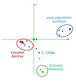 Chate est différent de Flexuosus, poids et forme du fruit, les phénotypes présentent des similarités (le pH des fruits est égal 4 à 4,7), mais Chate a une teneur en matière sèche plus élevées que Flexuosus (3,1 °brix contre 1,8 à 2,7 °brix), il est plus doux[22].