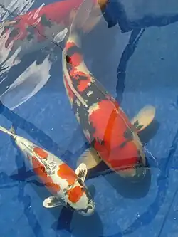 - Carpe Koï, bariolées - Cyprinus carpio carpio, variété d'élevage, considérée comme domestique en France.