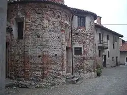 Malgré les dommages causés au fil du temps, le château-abri, avec ses murs et ses maisons en briques construites avec des galets de rivière disposés dans un motif à chevrons, conserve le charme du village médiéval. À côté de la porte d'entrée, où était le pont-levis sur le fossé qui courait tout autour, est conservé le rempart construit au XVe siècle avec au-dessous les vestiges d'une tour. Certaines habitations ont conservé les fenêtres d'origine avec des décorations en terre cuite.