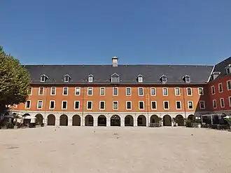 Les bâtiments anciens, ceux de l'ancienne caserne, prennent la forme d'un quadrilatère dont chaque côté mesure environ 100 mètres comprenant deux étages et des combles aménagés. Ceux-ci reprennent le plan des Invalides. On trouve en son centre une cour bordée de nombreux portiques[3] en péristyle, permettant l'accès à de nombreuses activités commerciales et administratives diverses qui s'y sont installées (restaurants, galerie d'art, certains services du Conseil Général de la Savoie, bureau de Poste, Inspection du Travail ou comme l'éditeur de poésie Comp'Act jusqu'en 2007).