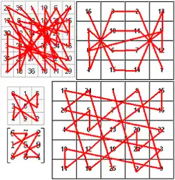 - ↑ (en) « Magic Squares for Odd, Singly Even, and Doubly Even Orders - Wolfram Demonstrations Project », sur demonstrations.wolfram.com