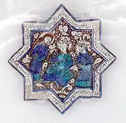 Un centre réputé de céramique s'implante au Moyen Âge à Kashan, en perse mongole, qui produit des carreaux qui prennent le nom de la ville, kashi (کاشی) désignant en persan les habitants ou des « carreaux glazurés»[15]. Des fouilles ont révélé que le complexe architectural de Takht-i Sulayman (vers 1270), le palais royal d'été du souverain Ilkhanide Abaqa (1265-1282) situé dans le nord-ouest de l'Iran, était richement décoré de revêtements de carreaux qui couvraient à la fois l'extérieur et les murs intérieurs de plusieurs de ses bâtiments. La présence de figures humaines, d'animaux, et d'inscriptions citant la poésie persane suggère que les carreaux ont été employées dans les palais de loisirs et demeures érigés pour les membres riches de l'élite Ilkhanide[16]. Ils témoignent de l'Art de l'Iran mongol.