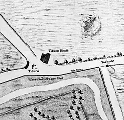 - Le gibet de Tyburn, principal lieu d’exécution près de Londres, était situé à la jonction de deux anciennes voies romaines, aujourd'hui Bayswater Road et Westbourne street (51° 30′ 48″ N, 0° 09′ 37″ O).