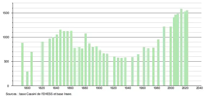 - ↑ Fiches Insee - Populations de référence de la commune pour les années 2006, 2007, 2008, 2009, 2010, 2011, 2012, 2013, 2014, 2015, 2016, 2017, 2018, 2019, 2020, 2021 et 2022.