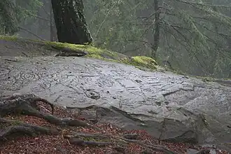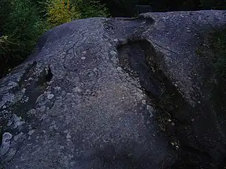 Dix rochers en partie arasés et polis par un glacier de la dernière période glaciaire présentent environ 200 figures gravées, parmi lesquelles on relève notamment des cercles concentriques avec une cupule centrale, des figures anthropomorphes et des images d'animaux, pas toujours clairement identifiables[1].