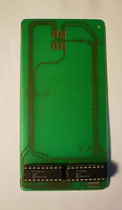 Une carte à puce est une carte en matière plastique, en papier ou en carton, de quelques centimètres de côté et moins d'un millimètre d'épaisseur[1], portant au moins un circuit intégré capable de contenir de l'information. Le circuit intégré (la puce) peut contenir un microprocesseur capable de traiter cette information, ou être limité à des circuits de mémoire non volatile et, éventuellement, un composant de sécurité (carte mémoire). Les cartes à puce sont principalement utilisées comme moyens d'identification personnelle (carte d'identité, carte d'accès aux bâtiments, carte d'assurance maladie, carte SIM) ou de paiement (carte bancaire, porte-monnaie électronique) ou preuve d'abonnement à des services prépayés (carte de téléphone, titre de transport) ; voir ci-dessous. La carte peut comporter un hologramme de sécurité pour éviter la contrefaçon. La lecture (l'écriture) des données est réalisée par des équipements spécialisés, certaines puces nécessitant un contact physique (électrique), d'autres pouvant fonctionner à distance (communication par ondes radio).
