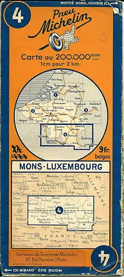Au début des années 1950, les cartes Michelin au 1/200 000 portaient une mention particulière, généralement sous la forme d'un timbre rond de tampon encreur, située en haut et à droite de la carte.