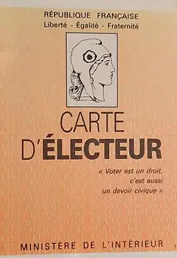 - ↑ « Utilisation erronée de l'expression " carte électorale " au lieu de " carte d'électrice " ou " d'électeur " - Sénat », sur www.senat.fr (consulté le )