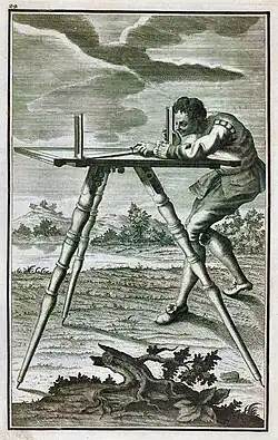 En campagne, sur le terrain, ces ingénieurs sont munis de planchettes, quarts de cercle, boussole. Le quart de cercle, encombrant, notamment dans les clochers, sera bientôt remplacé par un graphomètre à deux lunettes muni d'une boussole. Gradué en degrés, divisé par transversales, la résolution de l'instrument est de l'ordre de la minute de degré. Dans leurs relevés, ils se doivent de respecter les règles strictes de la triangulation : observer les trois angles des triangles, former des triangles de vérification, effectuer des tours d'horizon (360°). Pour leurs observations, ils s'informent de la toponymie du pays auprès des curés et/ou des syndics[N 3] qui les accompagnent parfois. Au travail de la journée succède celui du cabinet : mise au net de leurs notes et relevés puis ébauche des dessins de la carte du pays visité.