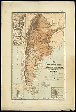 Le géographe péruvien Mariano Felipe Paz Soldán, qui avait cherché refuge à Buenos Aires pendant la désastreuse guerre du Pacifique entre le Pérou et le Chili, dessina en 1888, entre autres, deux cartes de l'Argentine :
