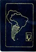 Une carte de l'Amérique du Sud apparaît au dos des passeports argentins, montrant l'emplacement du pays dans le continent et au sein du Mercosur, ainsi que le territoire réclamé par l’Argentine en Antarctique et les îles Malouines comme partie de l'Argentine. La moitié de la région chilienne de Magallanes n’apparait pas, y compris le détroit de Magellan, la partie chilienne de la Terre de Feu et toutes les îles au sud du canal Beagle.