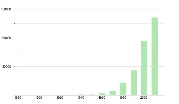 | 1980 | 21 763 | ▲ +183,15 % | |