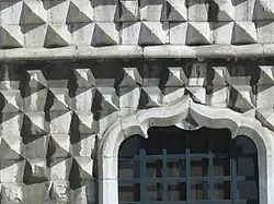 Sa façade est recouverte de pierres de taille en forme de pointe de diamant. Ses pointes (bicos) sont un exemple unique de l'architecture civile d'habitation de la ville de Lisbonne du XVIe siècle. La singularité de cette maison est qu'elle est un pastiche de deux styles architecturaux. La façade et ses pointes rappelle l'influence tardive mais majeure de la Renaissance italienne. D'ailleurs, le propriétaire de cette maison l'a faite ériger après son voyage en Italie. Elle s'inspire largement du Palazzo dei Diamanti à Ferrare ou du Palazzo Sanuti Bevilacqua à Bologne. Elle présente également beaucoup de similarité avec la Casa de las Conchas de Salamanque et la Casa de los Picos de Ségovie.