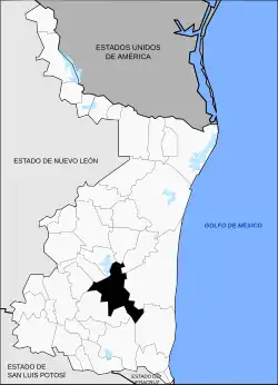 Elle est limitrophe au nord des municipalités d'Abasolo, de Jiménez et de Padilla, à l'ouest de celles de Güemez et Victoria, au sud de celles de Llera et de González, et à l'est de celle de Soto la Marina[5].