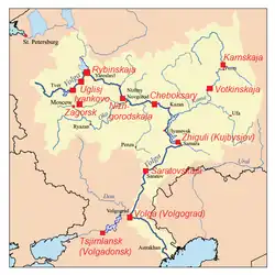À partir de l'aménagement du réservoir d'Ivankovo, près de Moscou, entre 1933 et 1937, douze grandes installations hydroélectriques, et d'autres de petite taille, ont été réalisées sur la Volga et la Kama, totalisant une puissance de 12 GW.