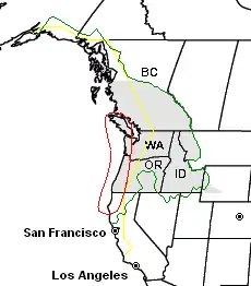 - Une écorégion comprenant les régions côtières du sud-est de l'Alaska, de la Colombie-Britannique, de l'Oregon, de l'État de Washington et de la Californie du Nord.