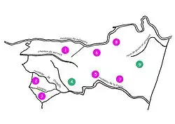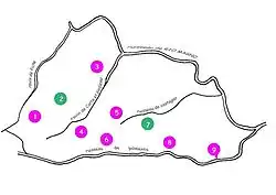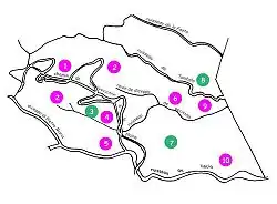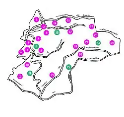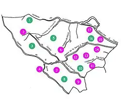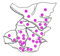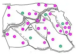 1 cioccio (ciocciu) 2 albertinaccie (albertinacce) 3 capo di fosso (capu lu fossu) 4 capo diceppo (capu diceppu) 5 casetta 6 chemin de cioccio à chiusello 7 chioso 8 cicceraccia 9 corte 10 cultrone 11 diceppo di petro maria 12 lupinajo 13 macchia 14 ombria (l'ambaccia) 15 pozzo cecco 16 presa di piazza 17 presa di tondu (presa tonda) 18 puggioletta 19 pujoletta 20 ravin de chiuselle 21 ravin de diccepolo (ravin de diccepo) 22 ravin de palmento 23 ruisseau de tombali (ruisseau de tombalu) 24 solia 25 stazzale 26 venachese 27 vignaccia 28 palazzu di u re 29 casevecchie 30 funtinaccia 31 presa 32 u listincu 33 vignacci 34 nansa 35 orto a l'ombria 36 vignaccio 37 collette 38 tombala (tombalu) 39 vigna 40 diceppo 41 mandrione (diceppo mandrione) 42 vignaccia 43 diceppo vivariaccio 44 diceppo al mandrione 45 caprone 46 diceppo a olive 47 bisarto u lisartu 48 diccepolo 49 pujoletta (paghjuletta) 50 casetta 51 vignaccia 52 casevecchie 53 cicceraccia 54 presa di piazzia 55 corte 56 casetta 57 puggioletta 58 macchia 59 diceppo alle corte (diceppo e corte) a croce