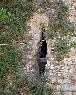 La résidence de l'empereur devait se trouver à l'étage supérieur, éventuellement divisée en trois pièces, correspondant à l'agencement du rez-de-chaussée. Vous pouvez voir quelques fenêtres originales : celle du milieu sur les côtés longs (à l'origine il devait y en avoir trois de chaque côté) et celles sur les côtés courts (même si l'une d'elles est murée). Il s'agit de fenêtres cintrées avec un cadre à moulure en pierre de tuf, mais en mauvais état de conservation. Juste en dessous de l'avant-toit se trouvent un certain nombre d'oculus sur la façade, comme celle décrite ci-dessus, dans différents états de conservation. Deux autres se trouvent sur les murs latéraux au-dessus des fenêtres ; ils sont également visibles sur les côtés donnant sur la cour intérieure.