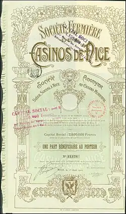 - 1 2 3 4 5 6 Yves Brugière, Les anciens casinos niçois et leurs jetons de jeu, un siècle d'histoire (1879-1979), Nice, Cercle numismatique de Nice, 2019, 118 p. (ISBN 979-10-699-3898-4).
