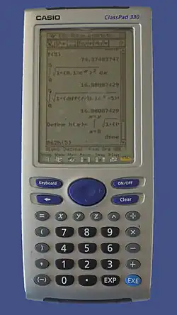 La calculatrice Classpad 300/300+/330 est la concurrente pour sa capacité de calcul de la TI Voyage 200, ainsi que de la TI-89 Titanium et dernièrement de la TI-Nspire CAS. L'atout majeur de cette calculatrice est qu'elle possède un écran tactile très utile dans toutes les manipulations graphiques. Son écran LCD est monochrome comme sur la quasi-totalité des autres calculatrices.