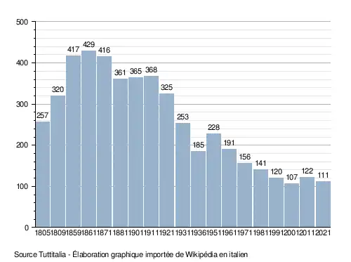 Le niveau d'habitants a chuté depuis 1871. En effet, il y a moins de naissances que de décès. L'immigration de la population vers différents pays comme la France jouent aussi un rôle important.