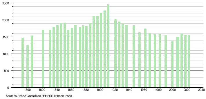 - ↑ Population municipale de référence en vigueur au 1er janvier 2025, millésimée 2022, définie dans les limites territoriales en vigueur au 1er janvier 2024, date de référence statistique : 1er janvier 2022.