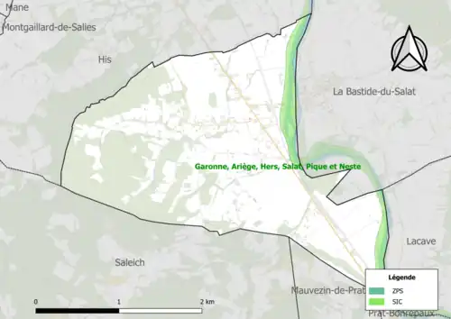 Le réseau Natura 2000 est un réseau écologique européen de sites naturels d'intérêt écologique élaboré à partir des directives habitats et oiseaux, constitué de zones spéciales de conservation (ZSC) et de zones de protection spéciale (ZPS)[Note 2]. Un site Natura 2000 a été défini sur la commune au titre de la directive habitats : « Garonne, Ariège, Hers, Salat, Pique et Neste »[20], d'une superficie de 9 581 ha, un réseau hydrographique pour les poissons migrateurs (zones de frayères actives et potentielles importantes pour le Saumon en particulier qui fait l'objet d'alevinages réguliers et dont des adultes atteignent déjà Foix sur l'Ariège[21].
