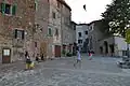 - datant du XIIIe siècle, sont assez bien conservées, même si en certains points elles ont été abaissées ou incorporées aux maisons du XVIe siècle. Trois portes s'ouvrent le long du côté sud : Porta Pianese, également connue sous le nom de Porta dell'Orologio, déjà présente au XIIIe siècle et reconstruite au XVIe siècle ; Porte Castiglionese, également connue sous le nom de Porta Amiata, qui conserve le mieux la structure originale; et la petite Porta Spennanziana, ajoutée au XVIIe siècle à mi-chemin entre les deux portes préexistantes pour relier la vieille ville au nouveau village construit au pied du centre historique.