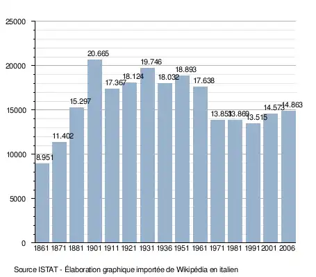 - ↑ (it) Popolazione residente e bilancio demografico sur le site de l'ISTAT.