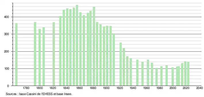 - ↑ Fiches Insee - Populations de référence de la commune pour les années 2006, 2007, 2008, 2009, 2010, 2011, 2012, 2013, 2014, 2015, 2016, 2017, 2018, 2019, 2020, 2021 et 2022.